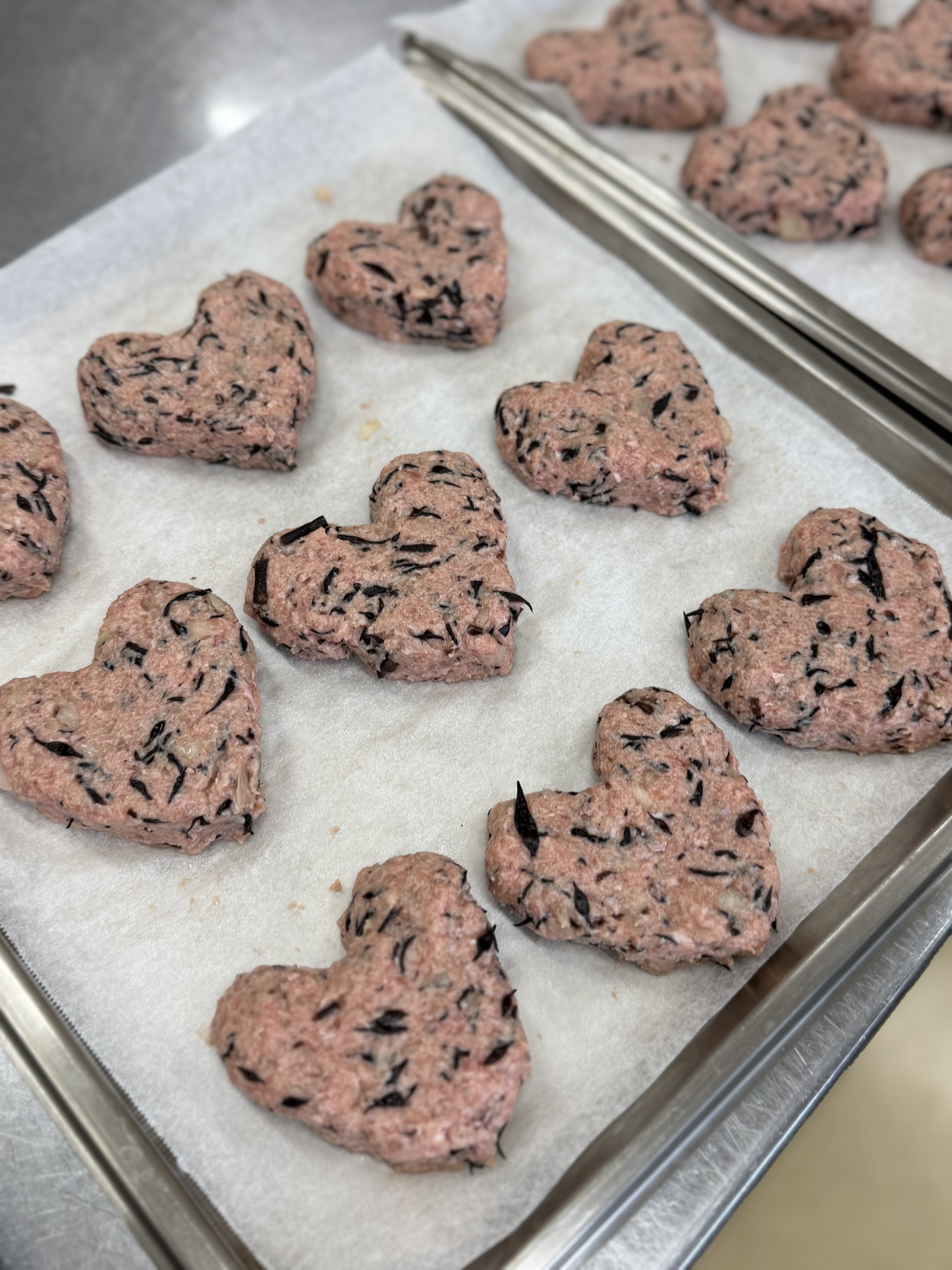 先日はバレンタインだったので 少しでも楽しんでもらえるようハンバーグの形をハートにしてみました♪ ・・・節分👹