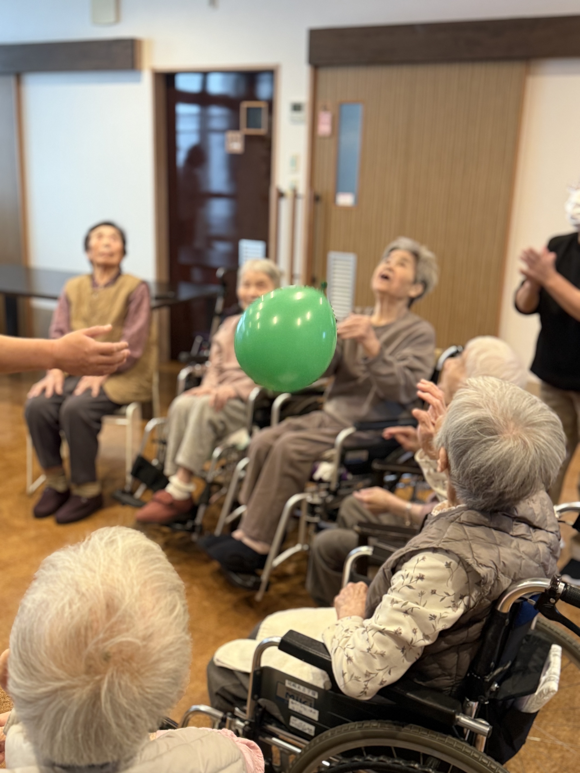 本日の悠々クラブは風船バレー🎈 みんなで輪になって、風船が飛んできたら「それ!」と高くトスを上げます😌・・・ひるがおユニットの改修工事